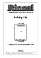 Installation and User Manual Infinity 16e Continuous Flow Water Heater Important. Read these instructions carefully before attempting installation or use of this appliance. All work must be carried out by competent persons.