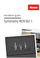 Specification All dimensions are in mm. 995 890 149 750 775 845 510 310 500 400 1090 715 1060 Cover panel Covers 150 mm opening on both sides of the heater. Covers are removed only when a Symmetry Heat Transfer Kit is installed. Outer frame 538 643 1006ID 1110 Symmetry RDV3611 Specification summary Input = 19-33 MJ/h Output = 3.8-7.