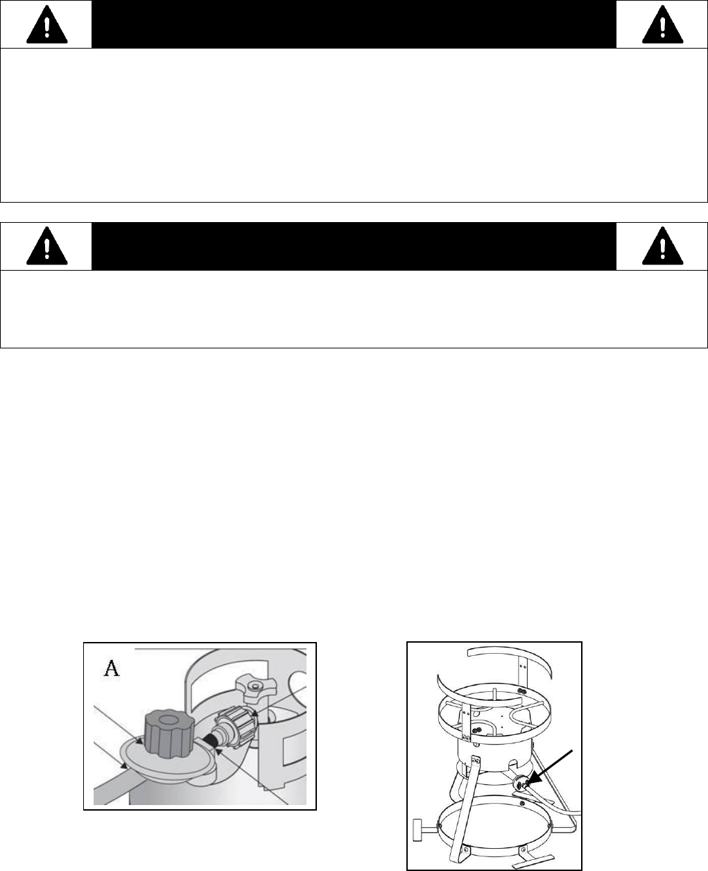 If you cannot stop a gas leak, immediately close LP tank valve, leave area of appliance,