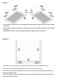 STEP 7 1. Screw 4 Cam bolts(A) into the pre-threaded holes of the Middle connection board(1) by hand. Do not over tighten. 2. Attach the Magnet(D) to the Middle connection board(1) by inserting 2pc Screw(E) through the holes on the Magnet(D) then tighten to the Top board(1). STEP 8 1. Place lower cross bars (11) and (12) as pictured above with backside of each part facing towards you. 2. Insert 4 wood dowels(C) into the dowel holes in the end of the Top cross board(13). 3.