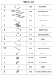 LISTA DE PIEZAS 1 1 PIEZA TABLERO SUPERIOR 2 1 PIEZA PANEL IZQUIERDO 3 1 PIEZA PANEL DERECHO 4 1 PIEZA BARRA TRANSVERSAL 5 1 PIEZA PUERTA 6 1 PIEZA PANEL CENTRAL 7 1 PIEZA TABLERO INFERIOR 8 1 PIEZA REPISA 9 1 PIEZA TABLERO TRASERO 10 1 PIEZA BARRA TRANSVERSAL TRASERA A 12 PIEZAS PERNO DE ANCLAJE B 12 PIEZAS PESTILLO DE LEVA C 22 PIEZAS PASADOR DE MADERA D 1 PIEZA PERILLA E 1 PIEZA TORNILLO PARA METALES 4 x 20 mm