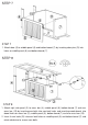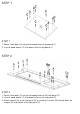 STEP 5 STEP 5 1. Attach cross bar (4), middle panel (6), bottom board (7) and rear cross bar (10) to left side panel (2) by inserting cam bolts into cam lock holes and inserting wood dowels into dowel holes on cross bar (4), middle panel (6), bottom board (7) and rear cross bar (10). 2. Insert 4 cam locks (B) into cam lock holes on middle panel (6) and bottom board (7) and rotate clockwise to secure cam bolts. STEP 6 STEP 6 1.
