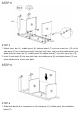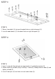 STEP 9 STEP 9 1. Attach top board (1) to both side panels (2), (3), cross car (4) and rear cross bar (10) by inserting cam bolts into cam lock holes and inserting wood dowels into dowel holes on both side panels (2), (3), cross car (4) and rear cross bar (10). 2. Insert 4 cam locks (B) into cam lock holes on both side panels (2), (3) and rotate clockwise to secure cam bolts. STEP 10 STEP 10 1. Insert 4 plastic shelf holders (F) into desired positions and put shelf (8) onto plastic shelf holders (F). 2.