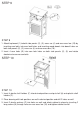STEP 7 STEP 7 1. Attach door (5) to middle panel (6) and bottom board (7) by inserting door pins (G) into holes on middle panel (6) and bottom board (7). STEP 8 STEP 8 1. Attach right side panel (3) to cross bar (4), middle panel (6), bottom board (7) and rear cross bar (10) by inserting cam bolts into cam lock holes and inserting wood dowels into dowel holes on cross bar (4), middle panel (6), bottom board (7) and rear cross bar (10). 2.