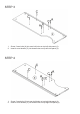 STEP 7 1. 2. 3. 4. Insert 1 screw (M) through hole on magnet plate (E) and tighten to left side door (15). Attach knob (H) to left side door (15) by inserting 1 screw (J) through hole on left side door (15) and tighten to knob (H). Insert 2 pins (K) into holes on each end of left side door (15). Repeat above steps to assemble right side door (14). STEP 8 1. 2.