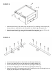 STEP 1 1. 2. 3. Attach drawer left side panel (9) to drawer back board (11) by inserting 2 screws (L) through holes on drawer left side panel (9), then tighten into drawer back board (11). Attach drawer right side panel (10) to drawer back board (11) by inserting 2 screws (L) through holes on drawer right side panel (10), then tighten into drawer back board (11). Slide drawer bottom board (12) into grooves on drawer left side panel (9) and right side panel (10) and drawer back board (11). STEP 2 1.