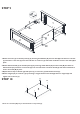 STEP 1 L 11 L 10 9 12 1. Attach drawer left side panel (9) to drawer back board (11) by inserting 2 long wood screws (L) through holes on drawer left side panel (9) and tighten into drawer back board (11). 2. Attach drawer right side panel (10) to drawer back board (11) by inserting 2 long wood screws (L) through holes on drawer right side panel (10) and tighten into drawer back board (11). 3.