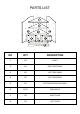 PARTS LIST NO QTY DESCRIPTION 1 1PC SHELF 2 1PC RIGHT SIDE PANEL 3 1PC LEFT SIDE PANEL 4 1PC BOTTOM BOARD 5 1PC BOTTOM DECORATIVE PANEL 6 2PCS OPEN SHELF 7 1PC RIGHT DOOR 8 1PC LEFT DOOR
