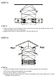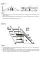 STEP 1 STEP 1 (1) Attach magnet (D) to shelf (1) by inserting 2 wood screws (C) through the holes on magnet (D) and tighten to shelf (1). (2) Attach bottom decorative panel (5) to bottom board (4) by inserting 1 wood dowel (A) into the holes on bottom board (4) and bottom decorative panel (5). STEP 2 STEP 2 (1) Insert 6 wood dowels (A) into the wood dowel holes on open shelves (6), shelf (1), bottom board (4) and bottom decorative panel (5).
