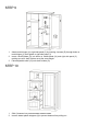 STEP 3 1. 2. 3. 4. 5. Attach magnet (M) to middle panel (14) by inserting 2 screws (N) through holes on magnet (M) then tighten to middle panel (14). Attach fixed shelf (4) to middle panel (14) by inserting cam bolts (A) into cam lock holes on fixed shelf (4), then insert 2 cam locks (B) into the cam lock holes on fixed shelf (4), rotate clockwise to secure cam bolts (A) in place.