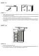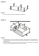 STEP 9 STEP 9 1. Attach metal hinges (I) to right side panel (3) by inserting 4 wood screws (D) through holes on metal hinges (I) then tighten to right side panel (3). 2. Insert 4 plastic holders (O) into holes on middle panel (14) and right side panel (3). All 4 plastic holders (O) should be at the same height. 3. Put shelf (15) onto plastic holders (O). STEP 10 STEP 10 1. Slide 3 drawers into pre-assembled drawer holders. 2. Insert 6 drawer plastic stoppers (H) to prevent drawers from pulling out.