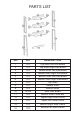 PARTS LIST NO QTY DESCRIPTION 1 2 3 4 5 6 7 8 9 10 11 12 13 1PC 1PC 1PC 1PC 1PC 1PC 1PC 1PC 1PC 3PCS 1PC 1PC 1PC Top Shelf Left Rail Board Top Shelf Right Rail Board Middle Shelf Left Rail Board Middle Shelf Right Rail Board Bottom Shelf Left Rail Board Bottom Shelf Right Rail Board Top Shelf Middle Shelf Bottom Shelf Rear Rail Board Bottom Rear Cross Bar Upper Right Side Frame Upper Left Side Frame 14 1PC 15 1PC Bottom Right Side Frame Bottom Left Side Frame
