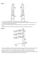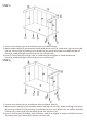 STEP 3 1.Insert 1 wood dowel (A) into wood dowel hole on end of rear rail board (10). 2.Attached bottom shelf left rail board (5) to rear rail board (10) by inserting wood dowel (A) into hole on bottom shelf left rail board (5). 3.Insert 1 wood screw (D) through hole on bottom shelf left rail board (5) and tighten to rear rail board (10). 4.Repeat above steps to assemble bottom shelf right rail board (6) to rear rail board (10). STEP 4 1.Insert 4 wood dowels (A) into wood dowel holes on top shelf (7). 2.