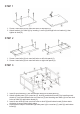 STEP 4 1. Attach top board (1) to left side panel (3) and right side panel (4) by inserting cam bolts into cam lock holes on left side panel (3) and right side panel (4). 2. Insert 4 cam locks (B) into cam lock holes on left side panel (3) and right side panel (4), then rotate clockwise to secure cam bolts in place. STEP 5 1. Attach back board (9) to cabinet by inserting 12 screws (J) through holes on back board (9), then tighten to cabinet.