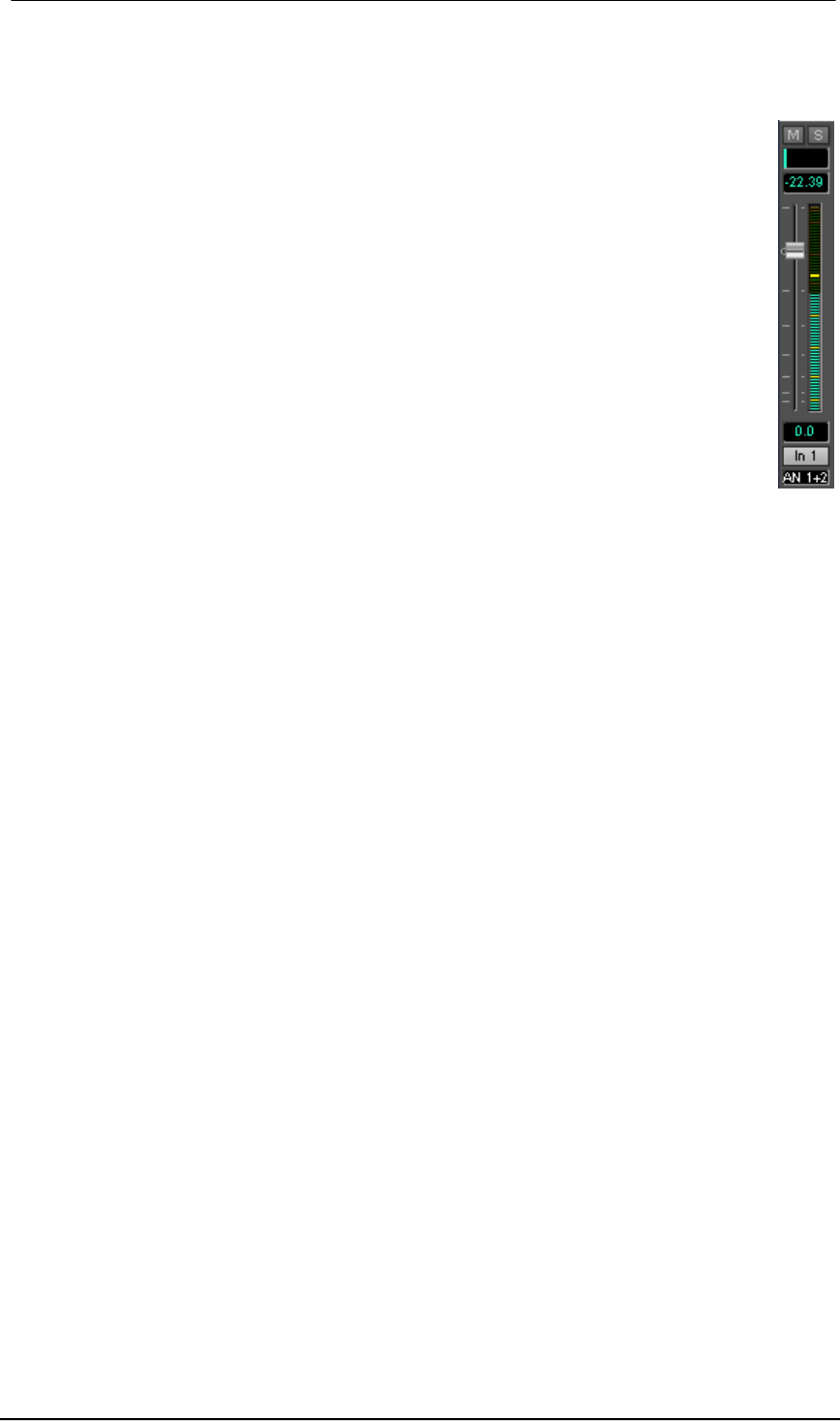 Next is the fader with a level meter. The meter shows both peak values (zero attack, 1