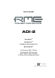 User's Guide ADI-2 SyncAlign TM TM SyncCheck Intelligent Clock Control TM TM SteadyClock Hi-Precision 24 Bit / 192 kHz 2-Channel AD / DA-Converter AES / SPDIF / ADAT Interface Hi-Power Hi-End Headphone Output AES/EBU 192 kHz / 24 Bit Interface
