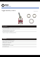 Toggle Switches, 9.5mm Specification RND 210-00469 RND 210-00470 RND 210-00471 Switching Function ON-OFF-ON ON-ON ON-ON Contact Material Silver Silver Silver Construction Form DPDT SPDT SPDT Contact Current 1.5A 1.5A 1.5A Contact Configuration 2CO 1CO 1CO Thread 10-48 UNS 10-48 UNS 10-48 UNS Termination THK .020 [0.50] Dimensions RND 210-00469 THK .020 [0.50] THK .020 [0.