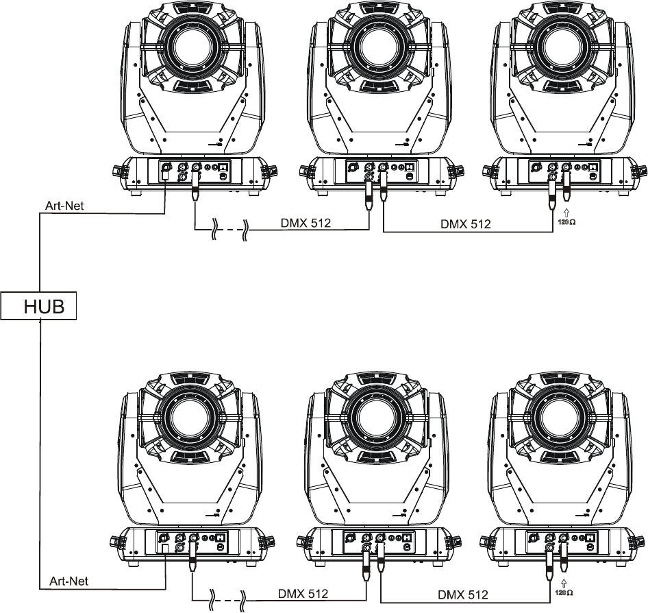Ethernet) in the xture chain,next xtures have standard DMX setting.