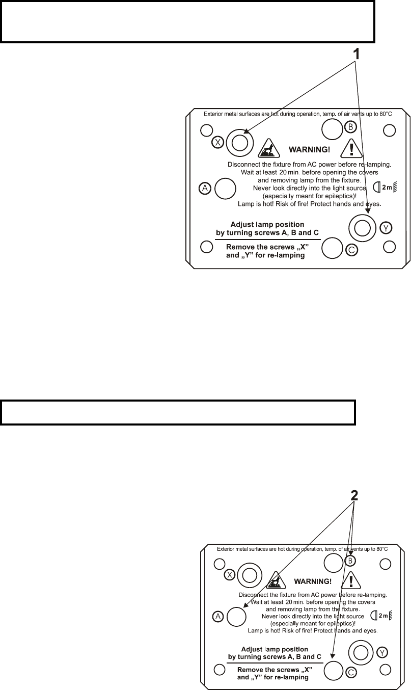 fasteners (1) marked “X,Y“ on the lamp cover to