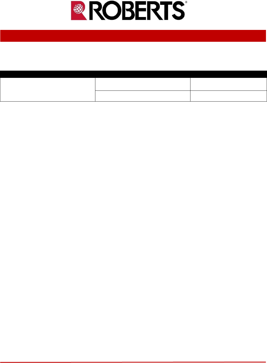 replaced without written authorization from Roberts will void the warranty. Roberts is not responsible for determining the