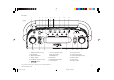 Controls 1 2 3 4 5 6 7 8 9 10 11 (Top) 18 17 16 15 14 12 1. Telescopic aerial (on rear) 7. Line out socket (on rear) 2. On/Off button 8. Auto Tune button 14. Tuning down button 3. Mains LED indicator 9. FM/DAB button 15. Liquid crystal display (LCD) 13. Tuning up button 4. Station presets 10. Info button 16. Treble control 5. Headphone socket (on rear) 11. Select/Real Time button 17. Bass control 6. 12. Tuning control 18.