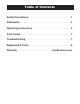 Table of Contents Safety Precautions . . . . . . . . . . . . . . . . . . . . . . . . . . . . . . . . 1 Description . . . . . . . . . . . . . . . . . . . . . . . . . . . . . . . . . . . . . . . 4 Operating Instructions . . . . . . . . . . . . . . . . . . . . . . . . . . . . . 5 Fault Codes . . . . . . . . . . . . . . . . . . . . . . . . . . . . . . . . . . . . . .