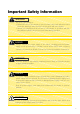 Important Safety Information WARNING It is your responsibility to: • Restrict the use of this mower to persons who have read, understood and follow the warnings and instructions in this guide and in the mower • Inform your neighbours that you have a robot mower in operation and that they may be injured if they access your lawn during operation DANGER Always connect the power supply to the indoor, weather-protected power supply circuit protected by a residual current device (RCD) with a tripping current of