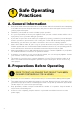 Operating 1 Safe Practices A. General Information 1. 2. 3. 4. 5. 6. 7. 8. Read, understand and follow all instructions on the mower and in the manual(s) before attempting to assemble and operate. Keep this manual in a safe place for future and regular reference and for ordering replacement parts. Familiarise yourself with all controls and their proper operation.