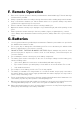 F. Remote Operation 1. 2. 3. 4. 5. 6. Refer to the separate operator’s manual provided with the downloadable app. Follow all warnings and instructions provided. Always operate the mower according to the app instructions while standing away from the mower. Keep a safe distance between you and the mower when it is in operation. Always stop mower operation before approaching it for any reason. Exercise extreme caution when the mower is moving towards you.