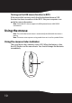 Turning on the USB mouse function in BIOS If the mouse fails to work, verify that the keyboard/mouse USB function has been turned on in the BIOS. See your computer user guide for more information. Note: Some older PCs do not support the USB keyboard/mouse in BIOS/DOS environment. Using the mouse Note: The scroll wheel on the mouse is automatically disabled while the mouse is pairing. Note: The mouse enters a power-saving mode when not in use for a period of time.