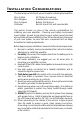I N S TA L L AT I O N C O N S I D E R AT I O N S The following is a list of tools you will need for installing the amplifier: Wire Cutters Wire Strippers Wire Crimpers Voltmeter #2 Phillips Screwdriver Assorted wire connectors Battery Post Wrench Electric Hand Drill with assorted bits This section focuses on some of the vehicle considerations for installing your new amplifier.