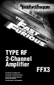ACCESSORIES Connecting PUNCH Capacitors Maintain the power you need to your Type RF Amplifier. Color Options Personalize your Type RF amplifier by changing the top and corner plastics to different colors. Available through our web site or local retailer. See our website for other accessories to help you get the most out of your system. www.rockfordfosgate.com – password TYPERFUSA to access the Type RF page. SPECIFICATIONS MODEL- Type RF 2-Channel FFX3 Continuous Power Rating (RMS) - Measured at 12.