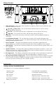 Français PARTICULARITÉS TECHNIQUES Dessus de l'ampli 1. Écran LCD du DSP - Écran titre lorsque l'amplificateur est allumé.Affiche les menus, sous-menus et sélections durant le réglage du DSP. 2. Touches à flèche vers le (haut) et vers le (bas) – Font défiler les menus et les sous-menus et d'effectuer des ajustements durant le paramétrage du DSP. 3. Touche à flèche vers la le paramétrage du DSP. (gauche) – Recule d'une étape dans les ajustements ou les menus durant 4.