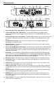 PARTICULARITÉS TECHNIQUES 5 Français 4 7 6 4 5 6 9 10 7 9 11 8 8 10 13 14 T400-2 12 11 13 14 T600-2 12 1. DEL d'alimentation (au-dessus de l'appareil - non montré) – Cette DEL bleue s'illumine lorsque l'appareil est allumé. 2. DEL thermique (au-dessus de l'appareil - non illustré) - Cette DEL rouge s'illumine si les composants internes de l'ampli surchauffent et déclenchent la protection thermique. Si cela se produit, l'ampli s'éteint pour refroidir. 3.