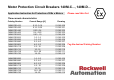 Motor Protection Circuit Breakers 140M-C..., 140M-D... Application Instruction for Protection of EEx e Motors Please read this first Time-current characteristics Catalog Number Current Range [A] Drawing 140M-C2E-A16 140M-C2E-A25 140M-C2E-A40 140M-C2E-A63 140M-C2E-B10 140M-C2E-B16 140M-C2E-B25 140M-C2E-B40 140M-C2E-B63 140M-C2E-C10 140M-C2E-C16 140M-C2E-C20 140M-C2E-C25 0.10...0.16 0.16...0.25 0.25...0.4 0.4...0.63 0.63...1.0 1.0...1.6 1.6...2.5 2.5...4.0 4.0...6.3 6.3...10 10...16 14.5...20 18...