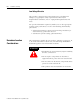 7-2 Maintenance and Safety The following section describes several safety areas you should be aware of when troubleshooting your SLC 500 system. Indicator Lights — When the module status LED on the module is illuminated, the module is receiving power. Activating Devices When Troubleshooting — When troubleshooting, never reach into the machine to actuate a device. Unexpected machine motion could occur. Use a wooden stick.