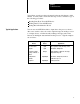 Chapter 4 ASCII I/O Module Tutorial Table 3.H Extraction of Fill Character POSITION FILE DATA 001 002 003 004 005 006 007 008 009 010 E011 0000 2020 2020 2020 2020 2041 5332 3341 5334 ASCII Equivalent status word one status word two A S 2 3 A S 4 This feature does not allow your program to add data characters in place of fill characters removed from the string. This feature changes the position of data.