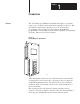 Chapter 1 Introduction General The 1771-IS DC (5V) Multiplexer Input Module, Figure 1.1 reads the status of up to 72 hard contact switch devices through one I/O slot. This information is transferred to the PC processor by block transfer programming. The module can be used with any Allen-Bradley programmable controller that has block transfer capability, an expandable data table, and uses the 1771-I/O structure. Figure 1.