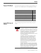 Configure FLEX I/O Digital Modules on a DeviceNet Network 49 Set the status size for a scanner If you want this information: Set the Status Which gives you: Size to (DINTs): Member: Data Type 10 ScanCounter DINT DeviceFailureRegister SINT[8] AutoverifyFailureRegister SINT[8] DeviceIdleRegister SINT[8] ActiveNodeRegister SINT[8] StatusDisplay SINT[4] ScannerAddress SINT status code of scanner ScannerStatus SINT address with an error: ScrollingDeviceAddress SINT ScrollingDeviceStatus