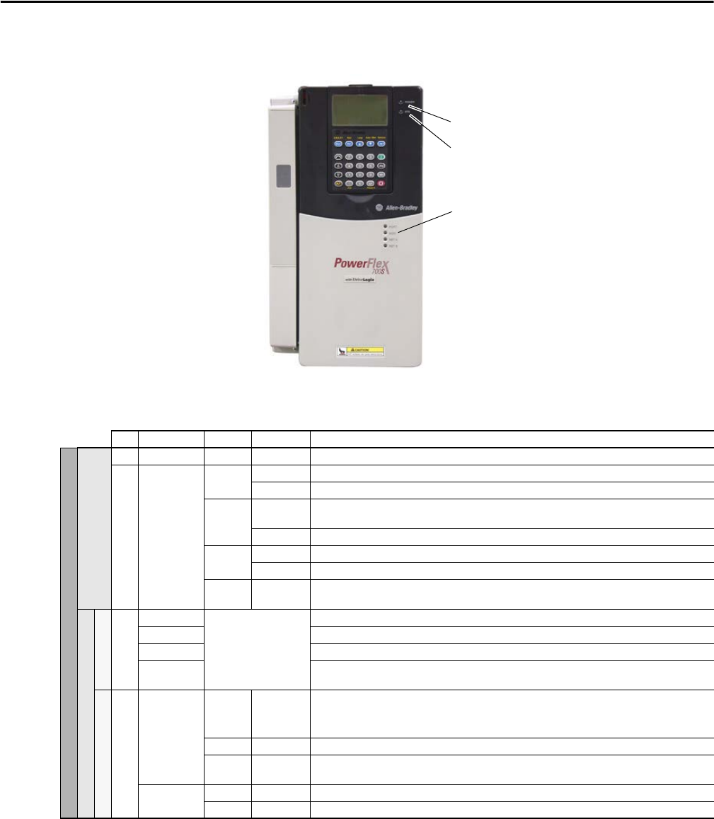 1 PWR (Power) Green Steady Illuminates when power is applied to the drive.