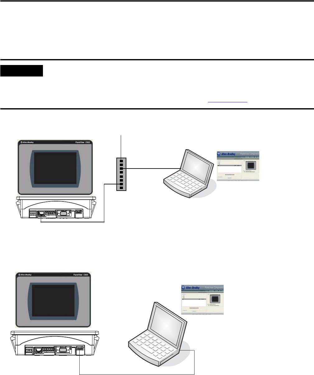 computer to the PanelView Component terminal over an Ethernet or USB connection.