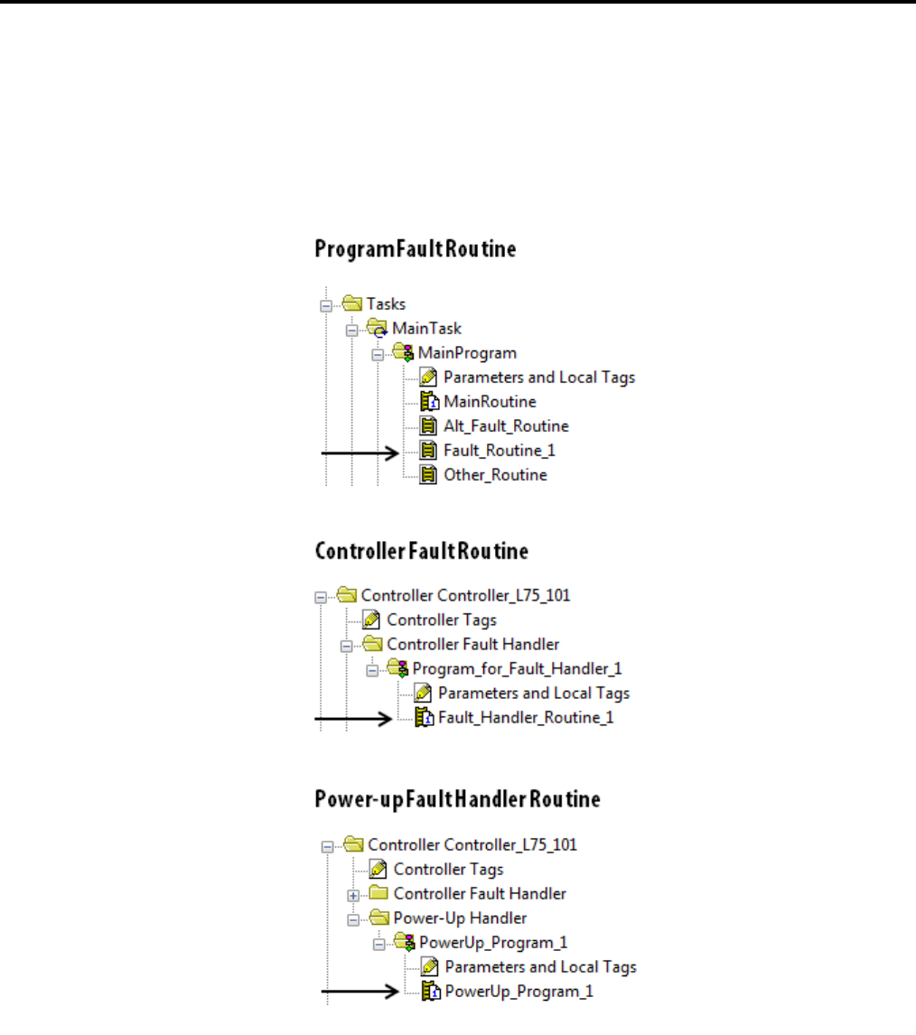 clearing the fault and continuing to run. Fault routines can be configured specific