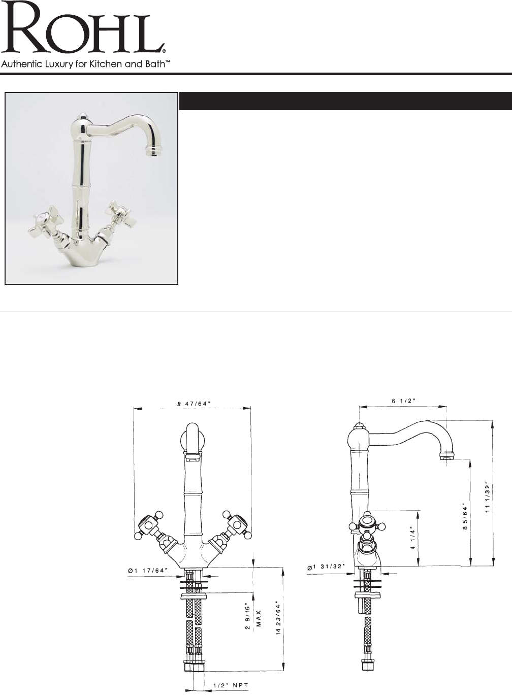 Consult your local ROHL showroom for additional information and specifications. For complete warranty details and a list of showrooms, go to www.rohlhome.com.