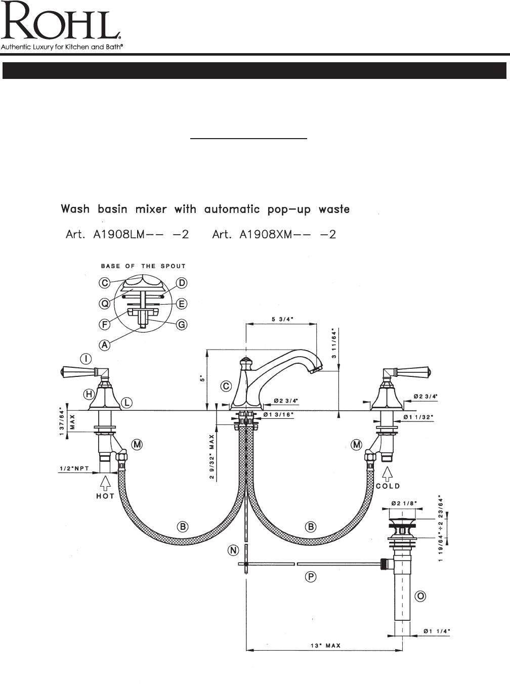 Consult your local ROHL showroom for additional information and specifications. For complete warranty details and a list of showrooms, go to www.rohlhome.com.