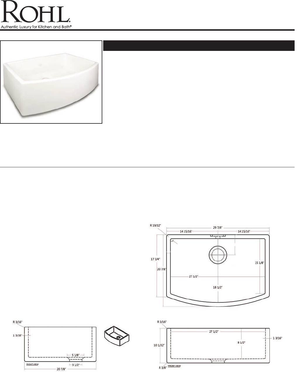 Consult your local ROHL showroom for additional information and specifications. For complete warranty details and a list of showrooms, go to www.rohlhome.com.