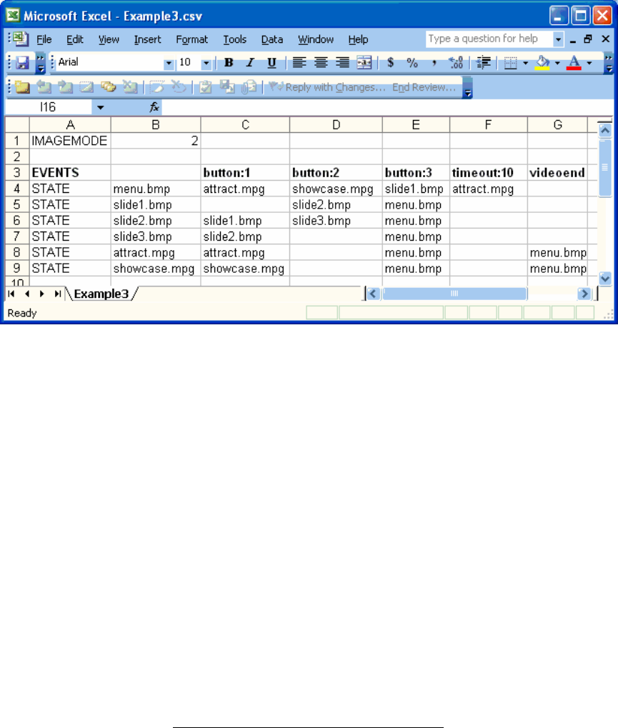 Example 3 contains five events, three button events and a timeout and videoend event.