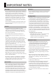 IMPORTANT NOTES Power Supply Maintenance • Do not connect this unit to same electrical outlet that is being used by an electrical appliance that is controlled by an inverter or a motor (such as a refrigerator, washing machine, microwave oven, or air conditioner). Depending on the way in which the electrical appliance is used, power supply noise may cause this unit to malfunction or may produce audible noise.