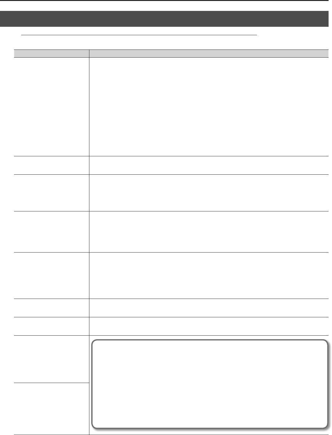 • These settings will take eect after you’ve turned the unit o, then back on again.