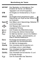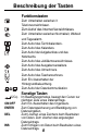 Beschreibung der Tasten Funktionstasten Zum Umschalten zwischen 3 Telefonverzeichnissen. Zum Aufruf des Internet-Verzeichnisses. Zum Umschalten zwischen Normalzeit, Weltzeit und Tagesalarm. Zum Aufruf des Terminkalenders. Zum Aufruf des Kalenders. Zum Aufruf der Aufgabenliste und des Notizbuchs. Zum Aufruf des Jubiläumsverzeichnisses. Zum Aufruf des Ausgabenverwalters. Zum Aufruf des Umrechners. Zum Aufruf des Taschenrechners. Zum Ein-/Ausschalten der Hintergrundbeleuchtung.
