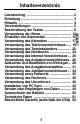 Inhaltsverzeichnis Lizenzvertrag ................................................ 2 Einleitung ...................................................... 3 Hinweis ......................................................... 4 Voreinstellungen ........................................... 5 Beschreibung der Tasten .............................. 8 Verwendung der Uhren ............................... 12D Einstellen von Alarmzeiten .......................... 15E Verwendung des Kalenders ........................